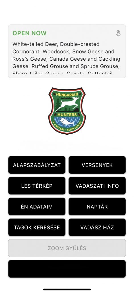 A dedicated app for the Hungarian Hunters and Anglers Association.